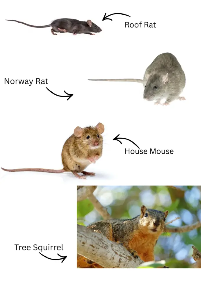 While our area has many wild rodents, the three we most encounter in homes and businesses are:
